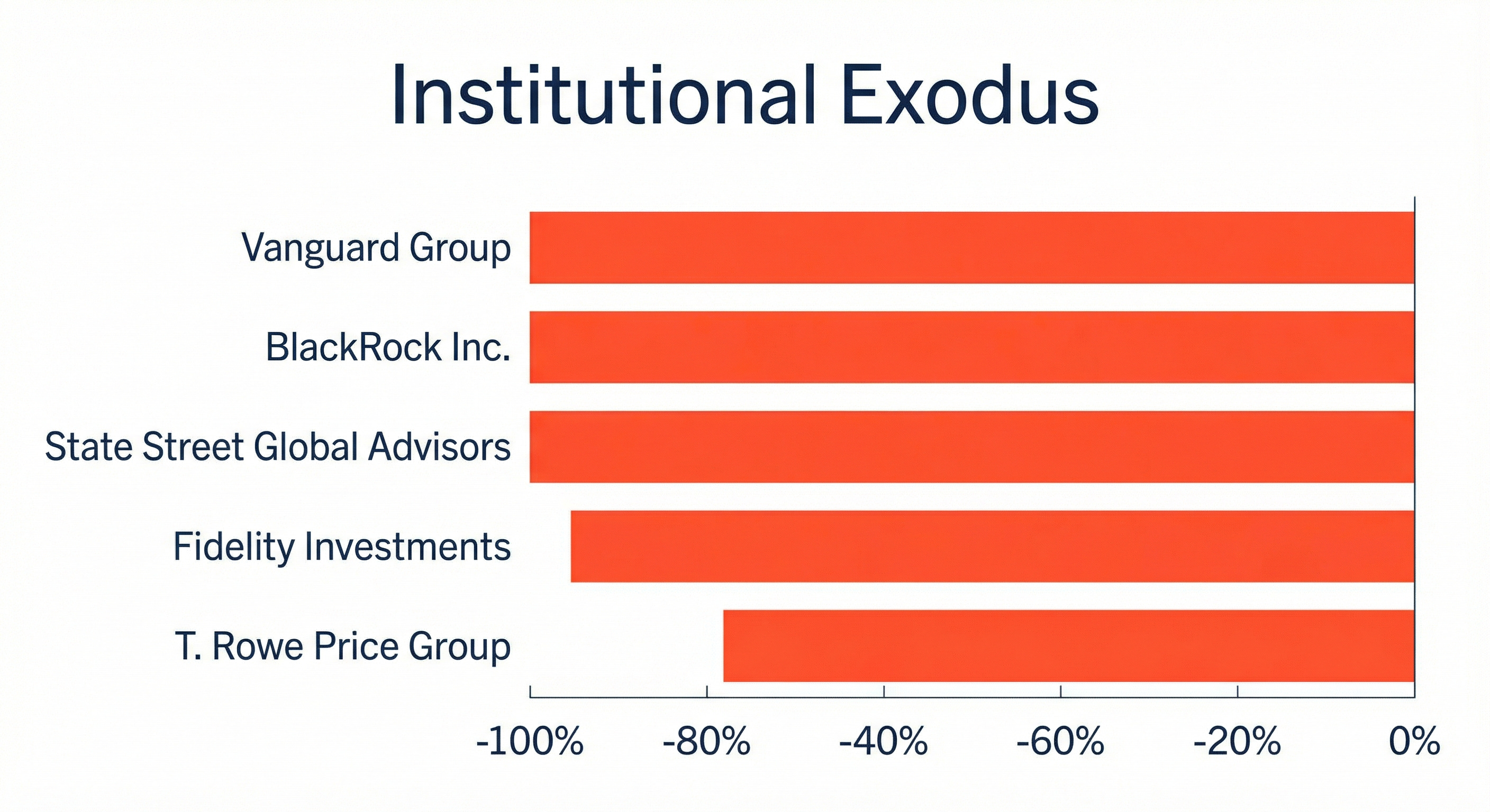 These are institutional investors with research teams and quarterly portfolio reviews, not retail traders panic-selling on Reddit. When five major institutions independently decide to bail on the same stock within weeks of each other, that’s a signal.