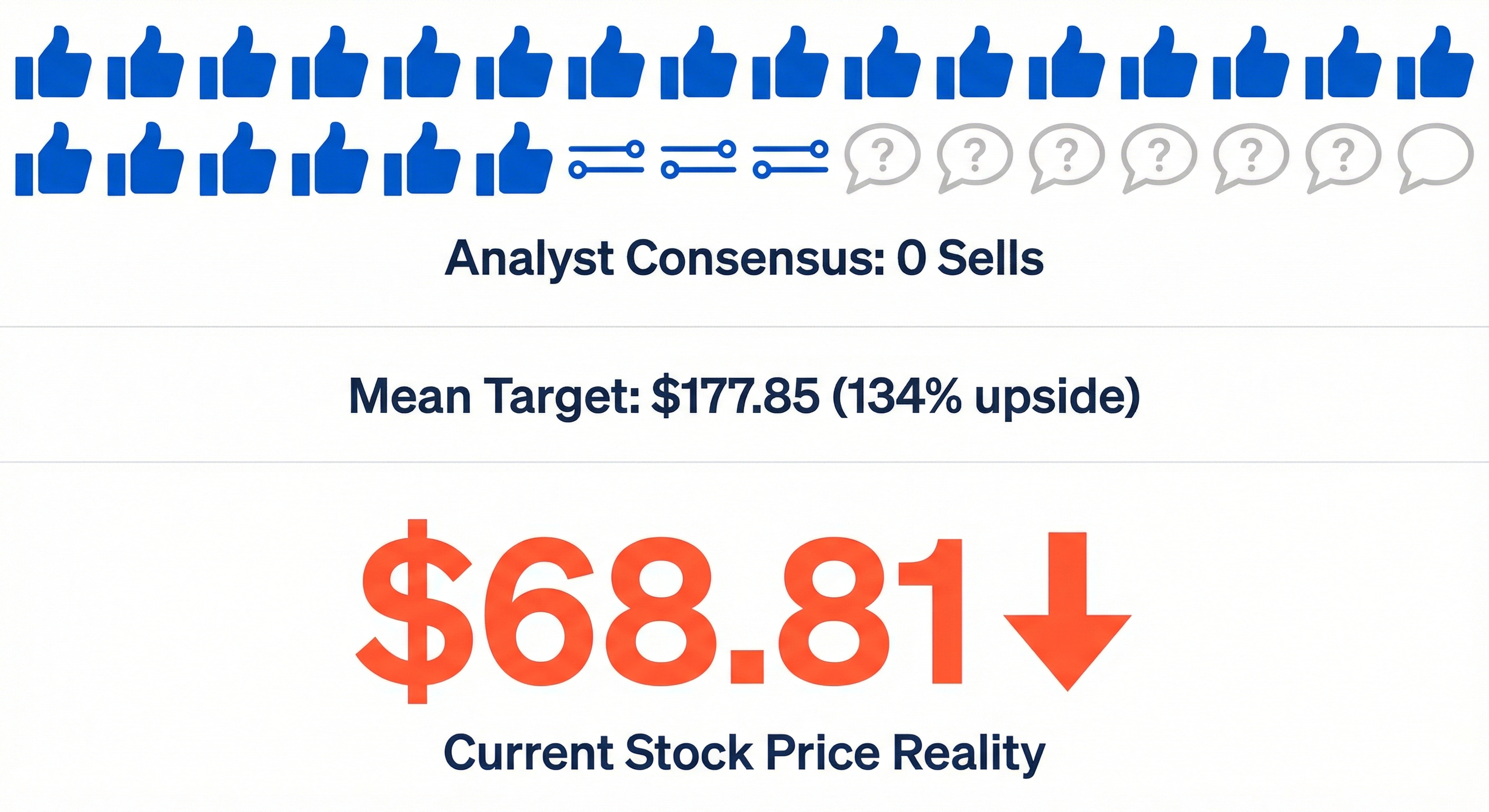 The disconnect between analyst conviction and market behaviour is either a screaming buy signal or evidence that the traditional analyst model doesn’t know how to price AI disruption risk. Probably both.