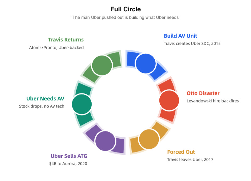 It’s a patient strategy. From the guy who launched Uber in city after city without waiting for regulatory approval, patience is unexpected. But Travis is fifty now, not thirty. And he’s watched enough companies (Cruise, Otto, Uber ATG) crash into the autonomous vehicle wall to know that the frontal assault doesn’t always work.