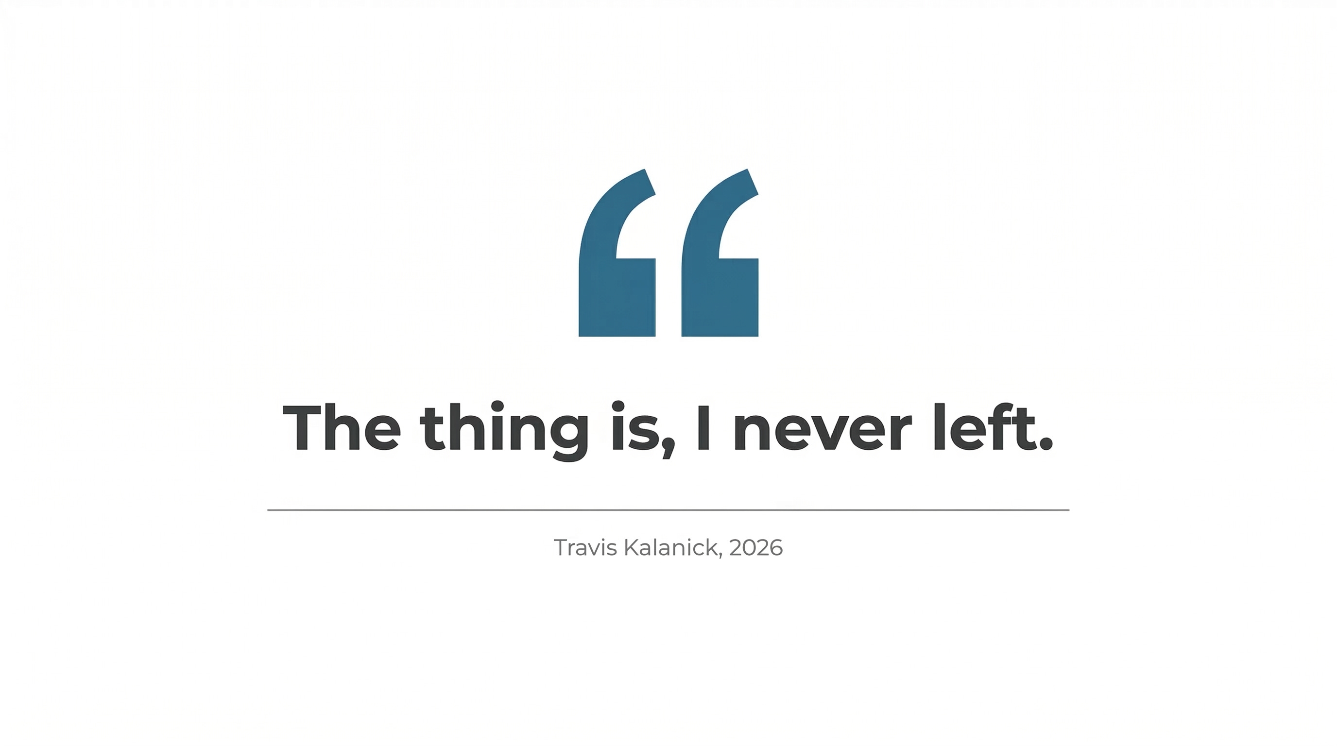 He grinned when he said it. The hosts laughed. But the line was doing real work. Travis Kalanick, the most famous founder-exile in Silicon Valley history, was telling the world he was back, and that he’d spent the exile building something bigger than anyone had guessed. Whether you believe him depends on how much credit you give the last eight years. And to understand those years, you have to go back to the beginning.