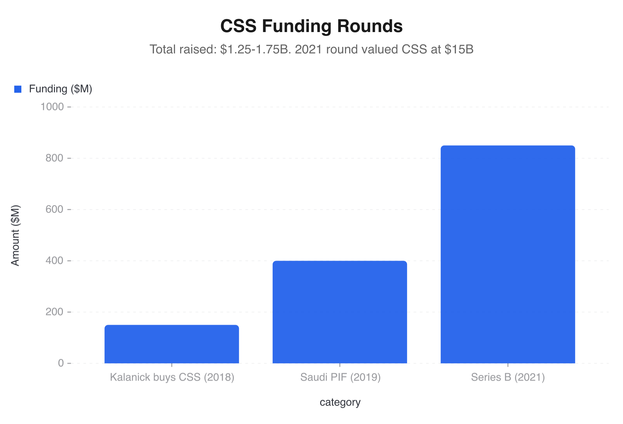 1 CloudKitchens’ total funding figures are estimated in the range of $1.25-1.75 billion due to the company’s extreme opacity about its finances during the stealth period. The $850 million round at $15 billion was the only raise confirmed by multiple sources.
