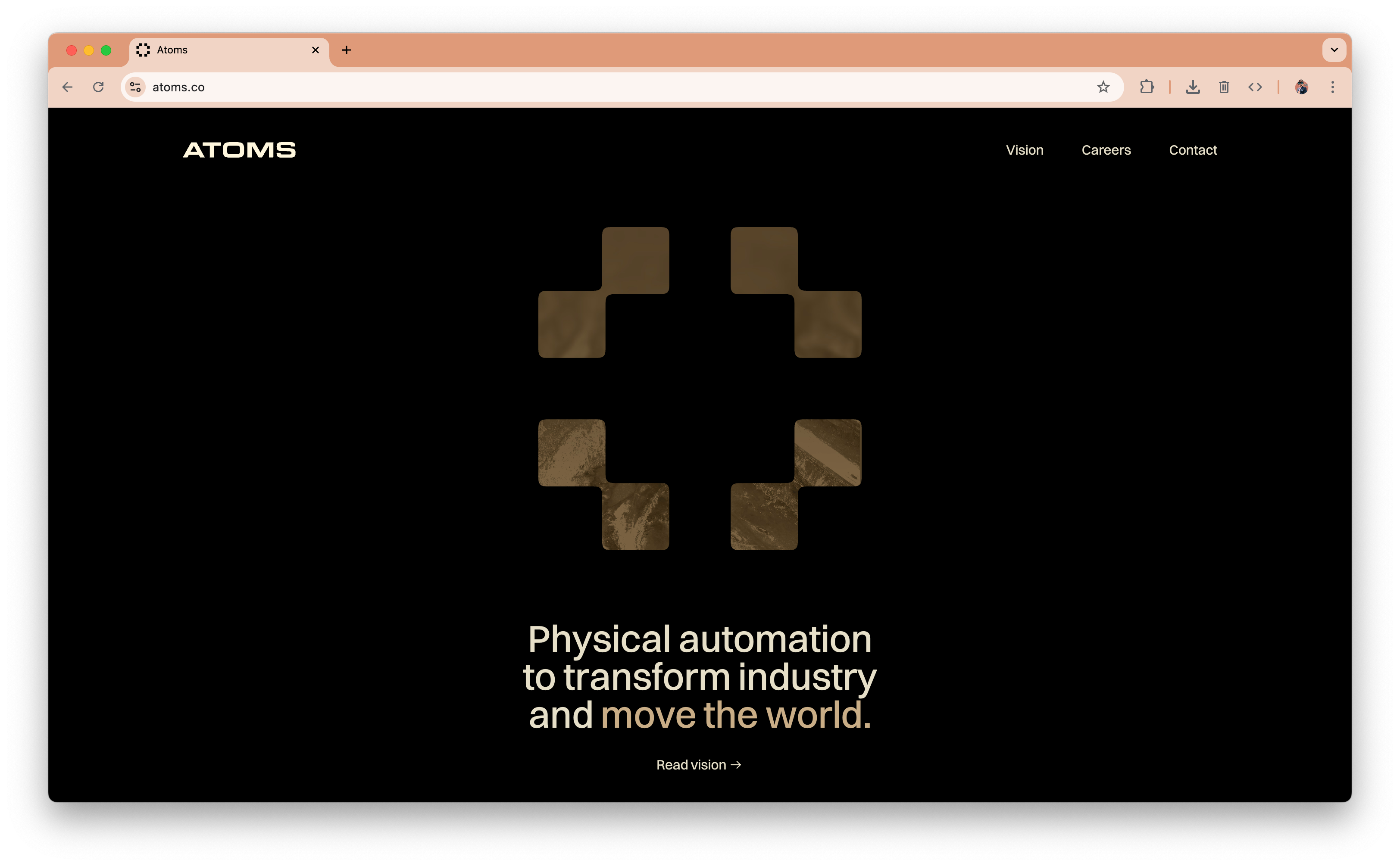 The atoms.co/vision manifesto is worth reading in full, but the key framework is a computer science metaphor that Travis clearly spent time developing: