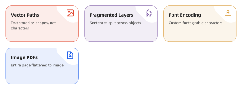 Text extraction comes first. The system pulls all the readable text out of your document. This is where format problems start: if your text is stored as an image, or as vector shapes rather than actual characters, the parser can’t extract anything. It’s like trying to copy text from a photograph.